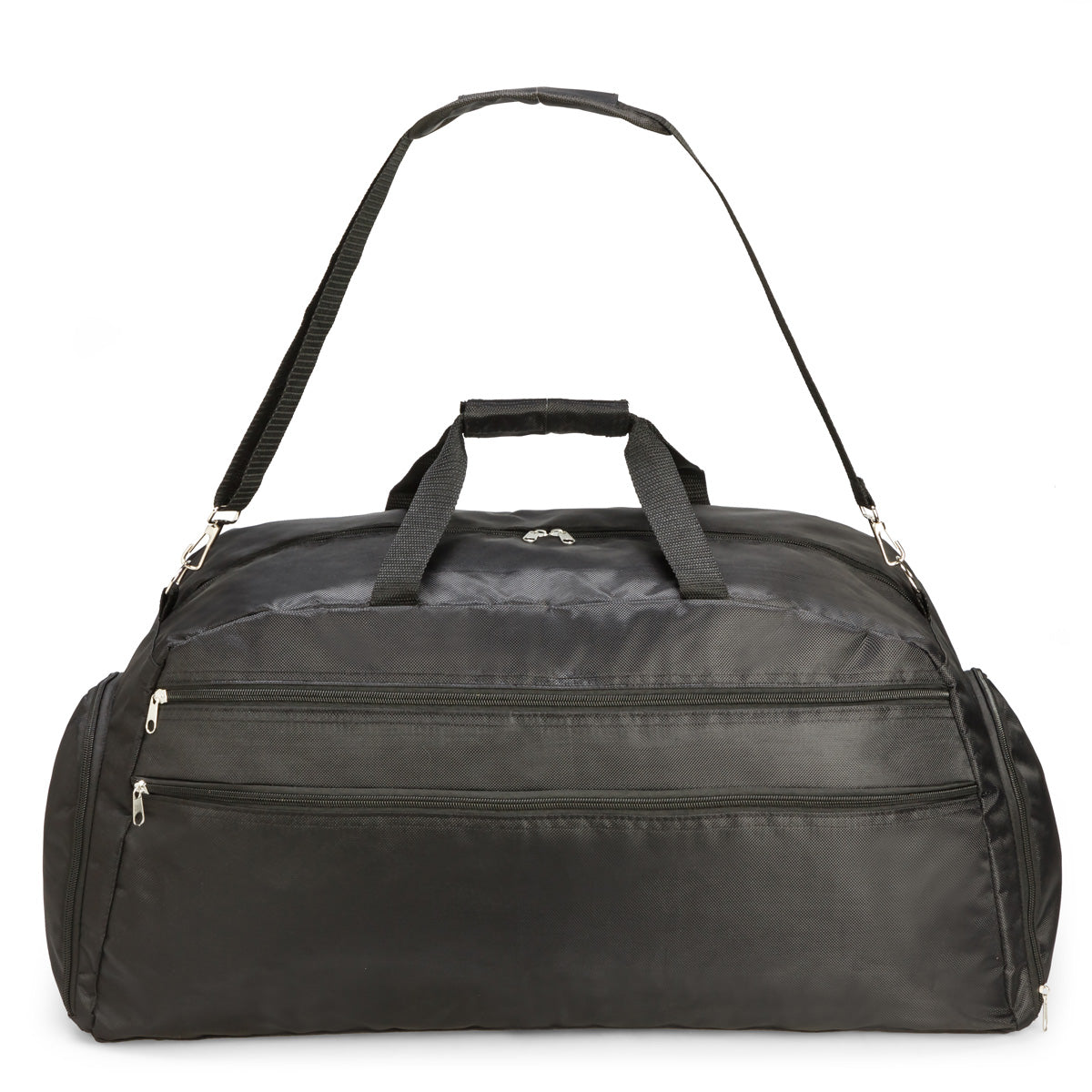 The Simaro Tog Bag is manufactured from high-quality, durable 1680 Denier material. The bag features a large, double-zippered main compartment, 2 large zippered front compartments, 2 zippered side pockets, a padded carry handle, and a long, adjustable shoulder strap.